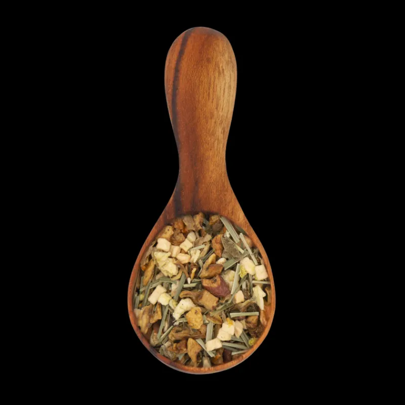 Infusion avec morceaux de pomme, d’hibiscus, de feuilles de mûrier, de citronnelle et pépites citronnées… Un vrai rayon de soleil dans votre tasse de thé !