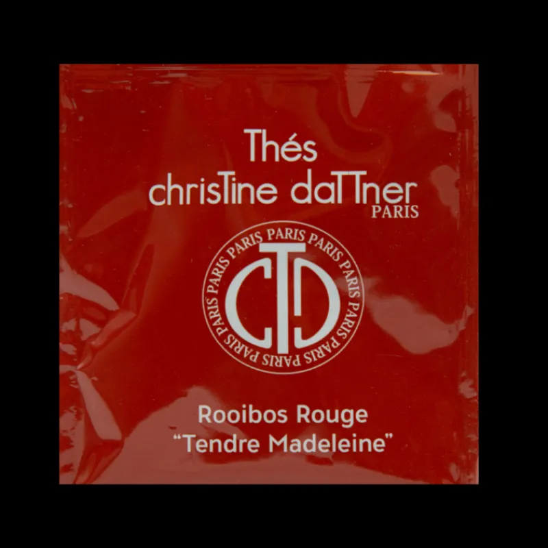 Sachet unitaire pyramide de rooibos rouge aromatisé à la madeleine, au caramel et à la vanille. Un véritable retour en enfance !